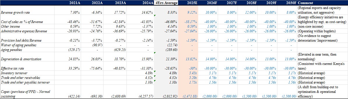 Cost of sales is normalised at 40% of revenue, an improvement versus the historical four-year average of ~46%. This assumption is grounded in: