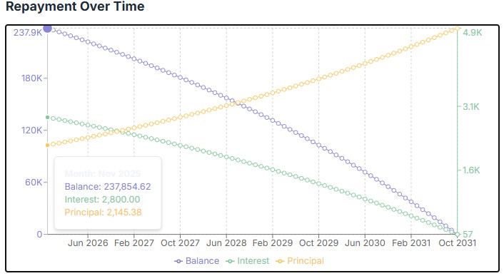 | Nov 2025 | 4,945.38 | 2,145.38 | 2,800.00 | 237,854.62 |